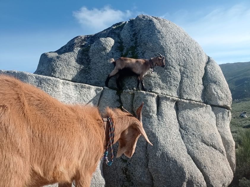 The Caminho de Cabras project began to take shape at the beginning of 2023 when India and João received their first two goats. Two more soon joined them, and the couple now have a total of eight goats, hoping to eventually extend their herd to 12 pack goats that will assist hikers on the trails. You can follow their antics and watch them grow at Portugal Pack Goats.