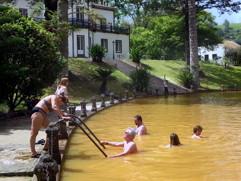 Our next destination takes us to another part of Portugal entirely – the breathtaking Azores, specifically the town of Furnas on São Miguel Island. The volcanic origins of the island create a thermal paradise, with Furnas featuring steamy, iron-rich pools surrounded by lush vegetation and tropical trees. There are a few hot springs in the area, but Parque Terra Nostra is a highlight due to its rich history and iconic thermal pool full of natural iron-rich water. The water temperature is right around 37 °C (98.6 °F), which makes for a very pleasant experience.