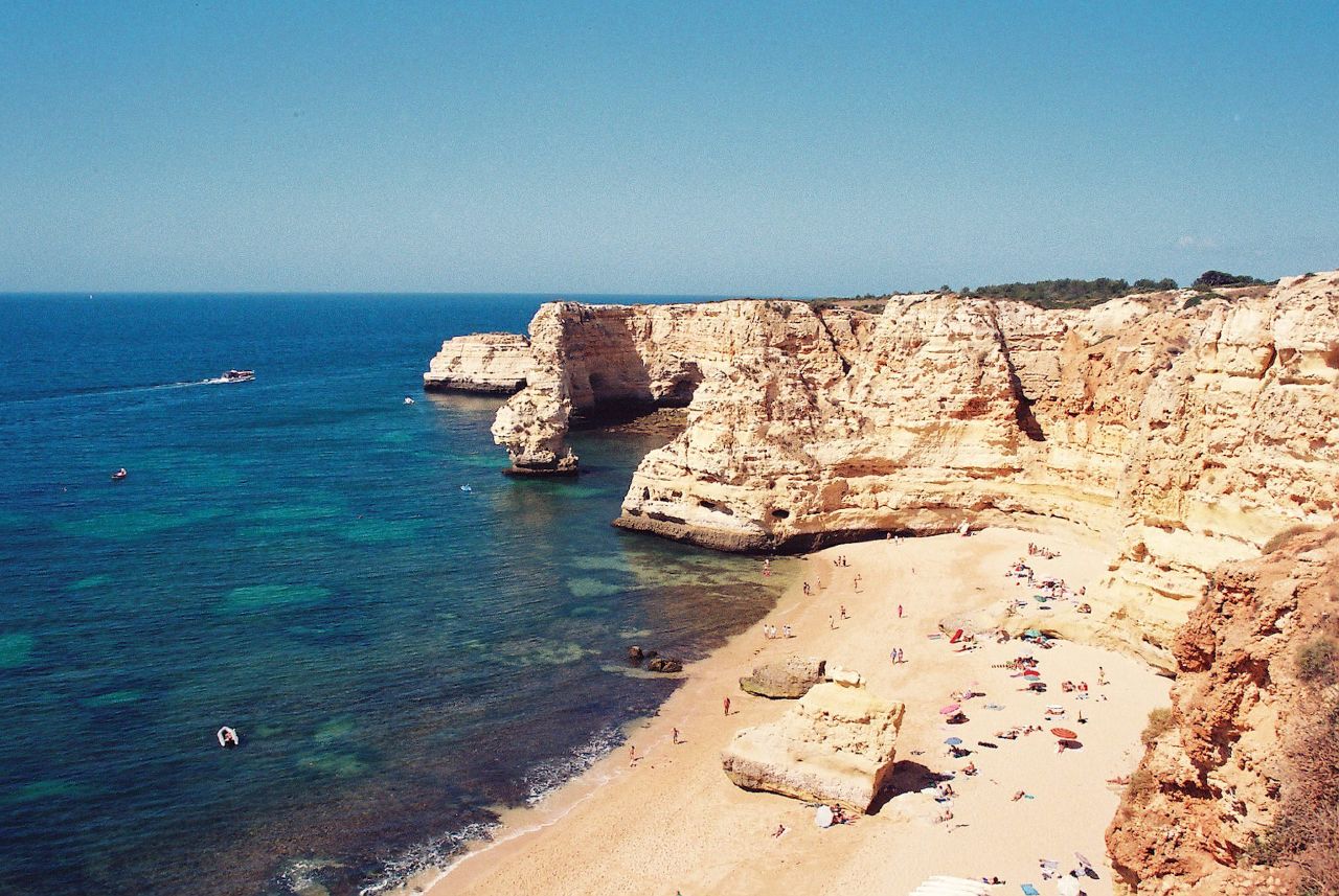 Praia da Dona Ana, near Lagos in the Algarve, is a stunning beach renowned for its clear waters and striking cliffs. It is one of the most photographed beaches in the region, often featured on postcards and billboards promoting the Algarve.