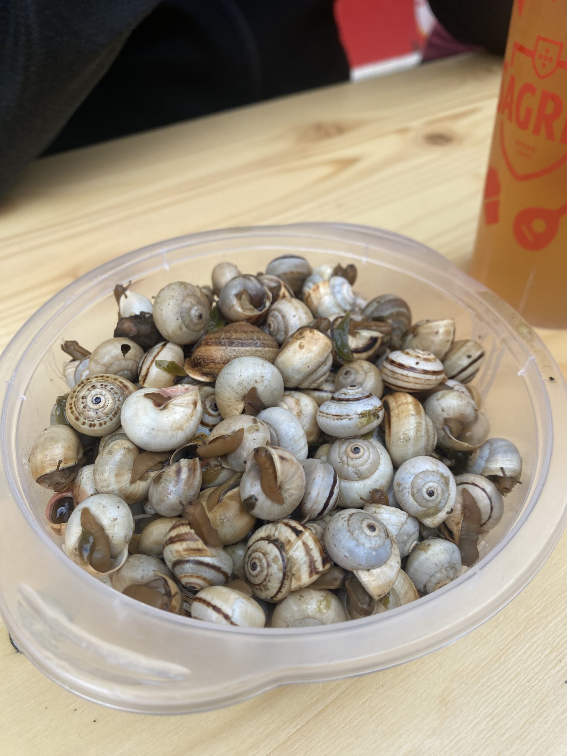Snails might seem like something you’d find in a French restaurant under the name escargot, but in Portugal, particularly in the summer, caracóis (small snails) are a common snack. These tiny mollusks are simmered in a broth made of garlic, olive oil, oregano, and sometimes a splash of beer or wine. The result is a briny, garlicky snack served in large bowls, often alongside cold beer. While locals slurp them up with enthusiasm, visitors might find their slimy texture a bit challenging.