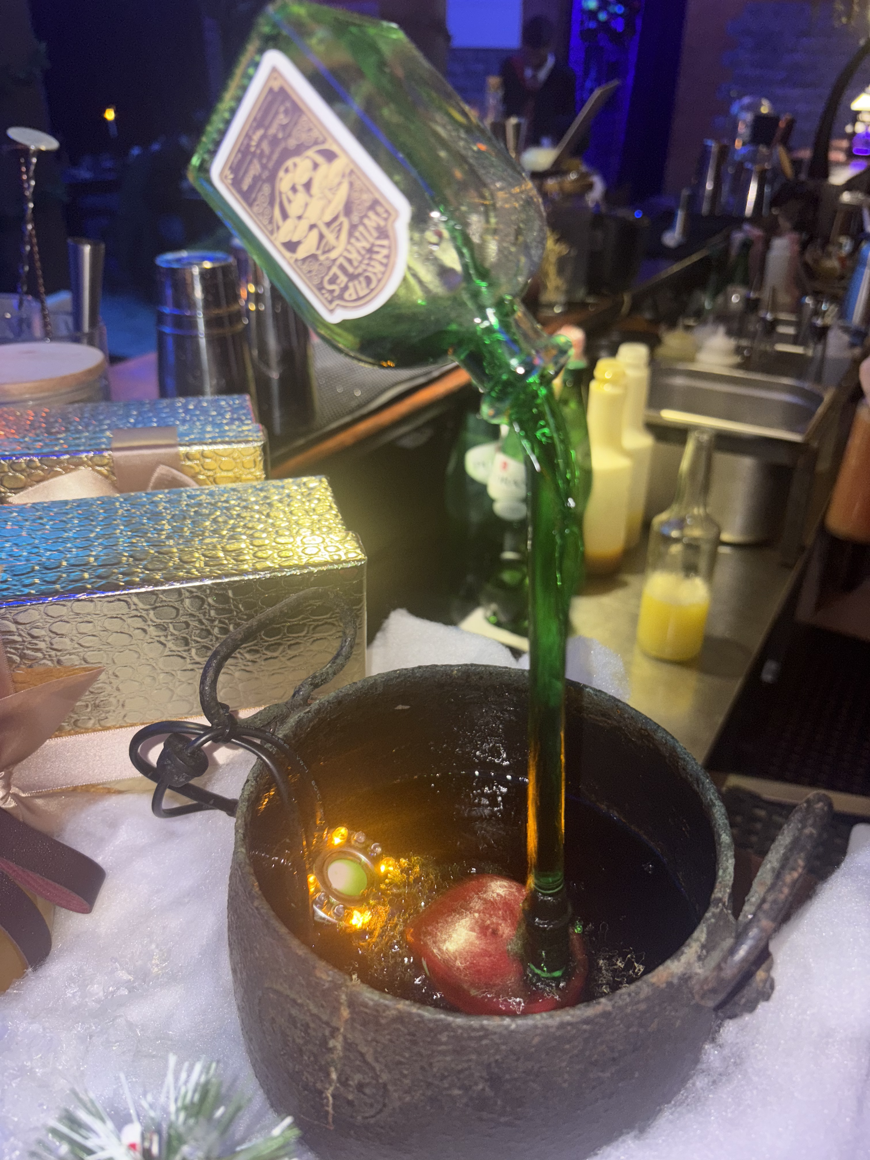 In addition to the magic moments I’ve already mentioned, Plataforma 9 3/4 did its best to entertain and enchant guests during the entire 2-hour experience. Not only did we get a chance to take pictures with Hedwig and watch it snow, but we also got to play with a wand at our table and use it to light the candle at our table. There were also four jellybeans in a tiny cauldron at our table (Bertie Bott’s Every Flavor Beans or not? You will have to find out.) and a moment when we were asked to think of a magic word and use it to make a cauldron bubble over and mist over our entire table. There were also moving pictures on the stairs between the ground and first floor, making me feel very much like we were at Hogwarts.