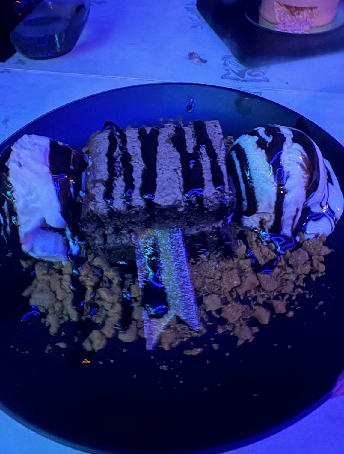 Besides the drinks, the only food option is all you can eat pizza, which is €25 per person for adults and €12.50 for children aged 4-10 years old. There are five desserts on the menu and they excel at keeping with the Harry Potter theme, whether it’s “Dragora Vase,” a Mandrake Oreo mousse in a flower pot, “Monster Book,” which is a brownie with ice cream with a magic tongue sticking out of the book, “Magic Cauldron,” “Strawberry Charm,” or a small Happy Birthday cake. These range between €4.50 and €7.