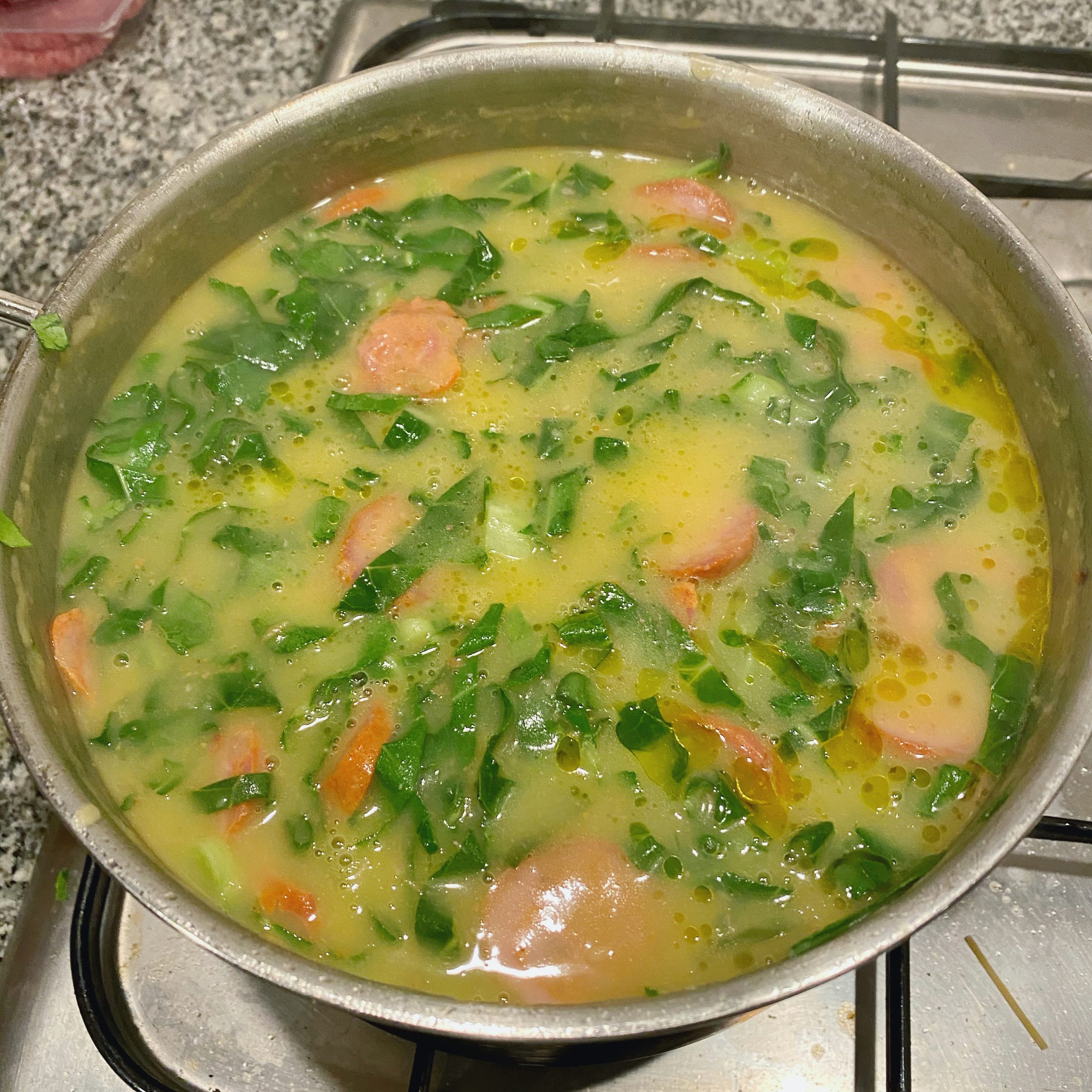Caldo Verde began as a humble northern soup made from potatoes, thinly sliced collard greens, olive oil, and rounds of chouriço. It eventually became a comfort dish and started being served at celebrations because it was affordable, warming, and easy to serve to large groups of people. Its flavor is simple but deeply satisfying.