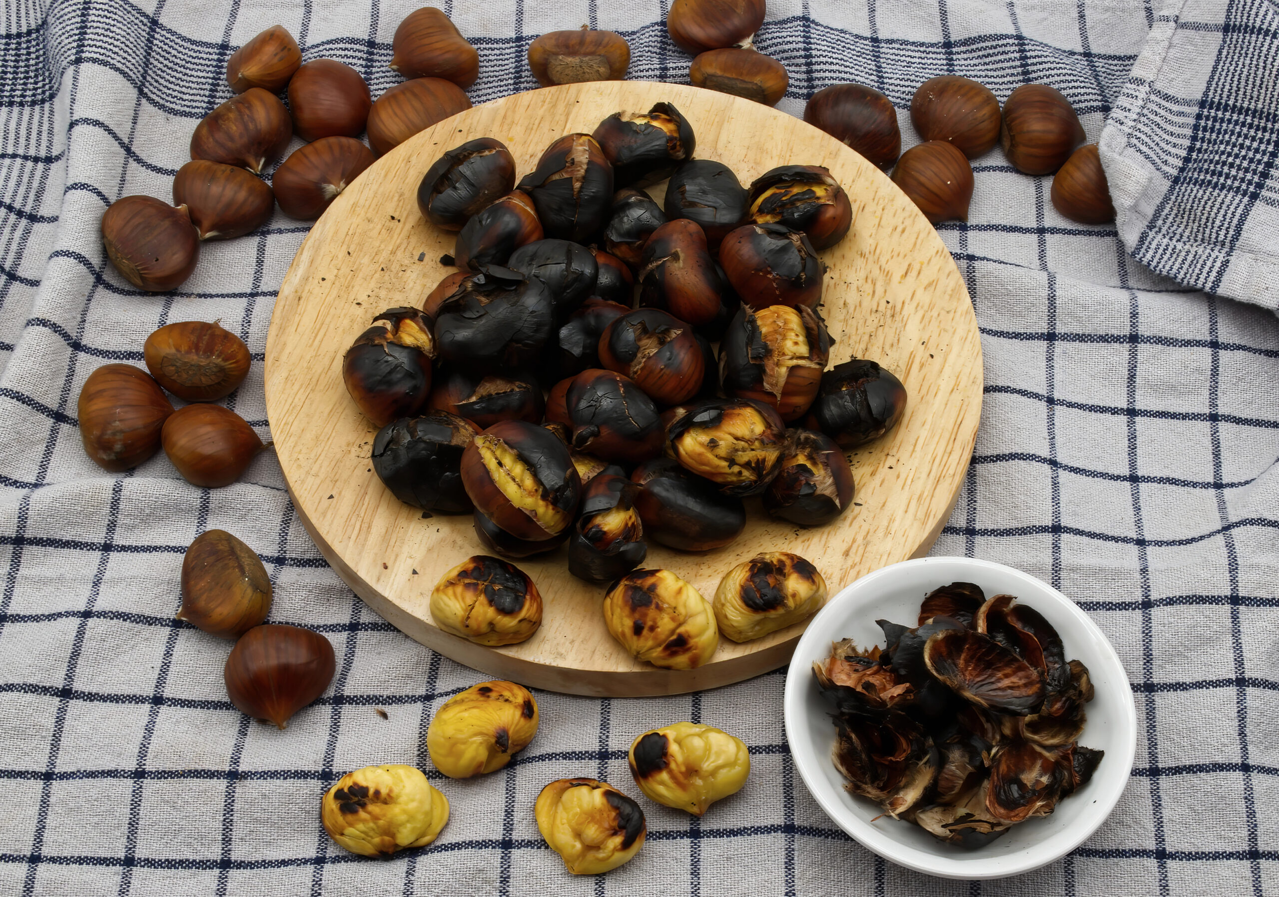 Vendors roast chestnuts over charcoal and sell them in small paper cones at Christmas markets and near public squares. They are also easy to prepare at home by scoring the shells and roasting them until tender.
