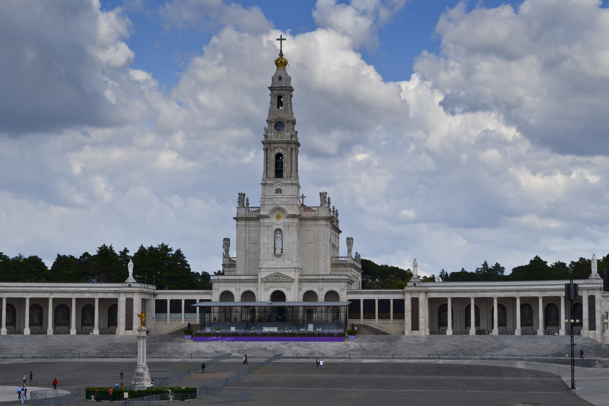 A panoramic view of the Sanctuary of Fatima including the Basilica of the Rosary and its colonnade, the statue to the Sacred Heart of Jesus and the Chapel of the Apparitions of Fatima, Portugal, DepositPhotos.com