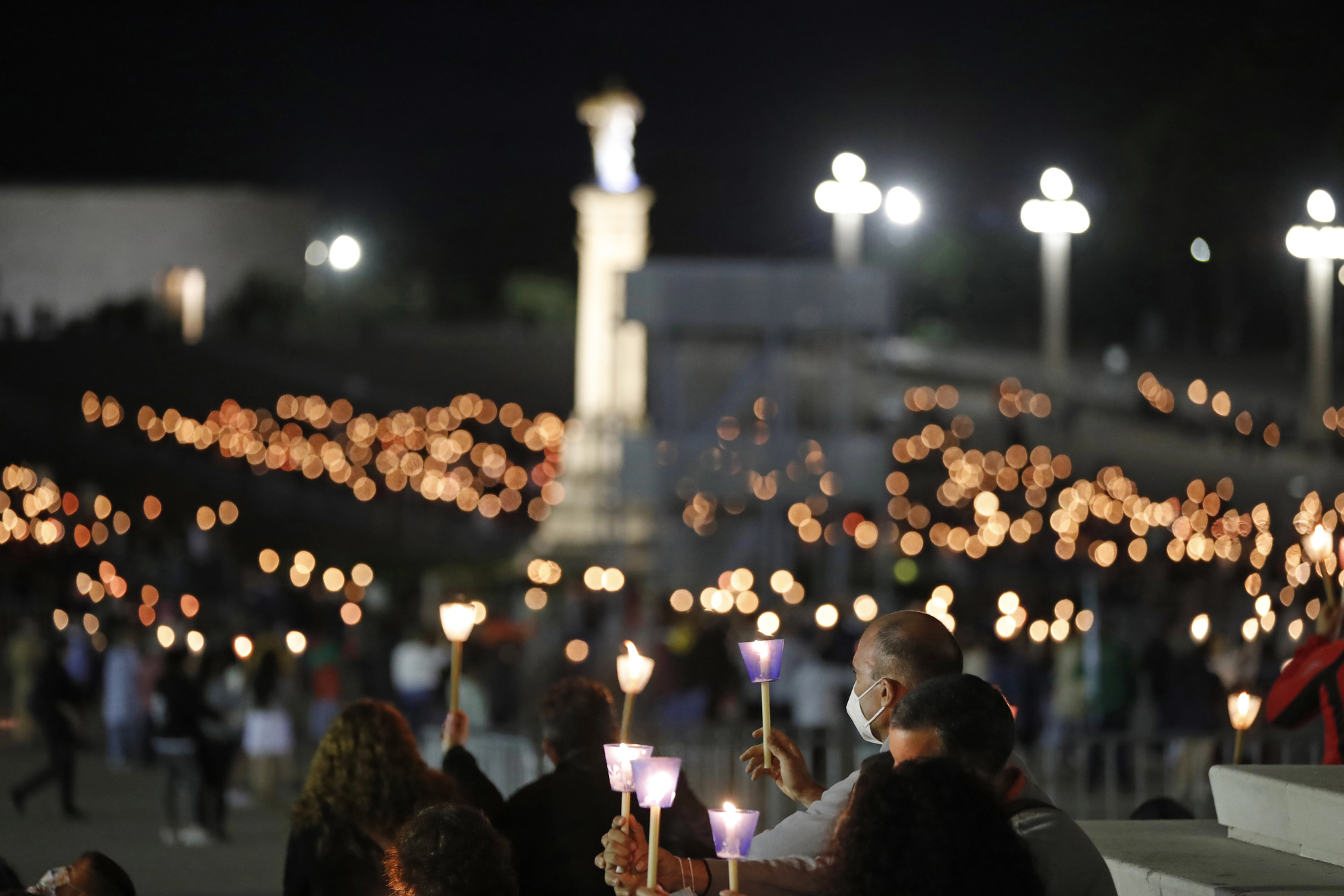 Worshippers with candles at evening mass during pilgrimage to Fatima, Portugal, DepositPhotos.com