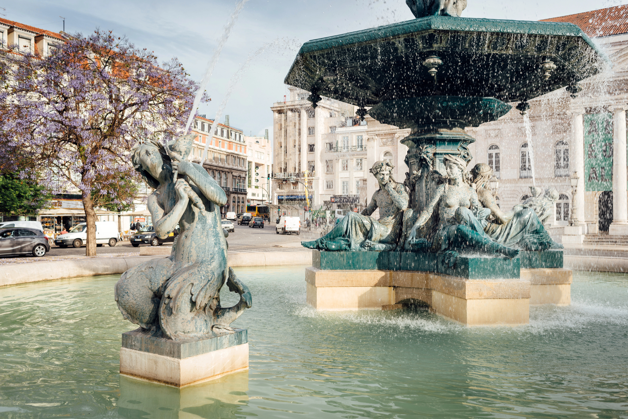 One of the most iconic fountain sites in Lisbon is Rossio Square (Praça Dom Pedro IV), where two identical fountains stand proudly, welcoming whoever may need them. Installed in 1889, these ornate fountains showcase intricate sculptures of mermaids, cherubs, and mythical figures. They have become one of the most photographed locations in Lisbon and attract visitors from around the world. You could say that they are the most famous twins in the city! These fountains add to the square’s historical charm. You can find them at Praça Dom Pedro IV.