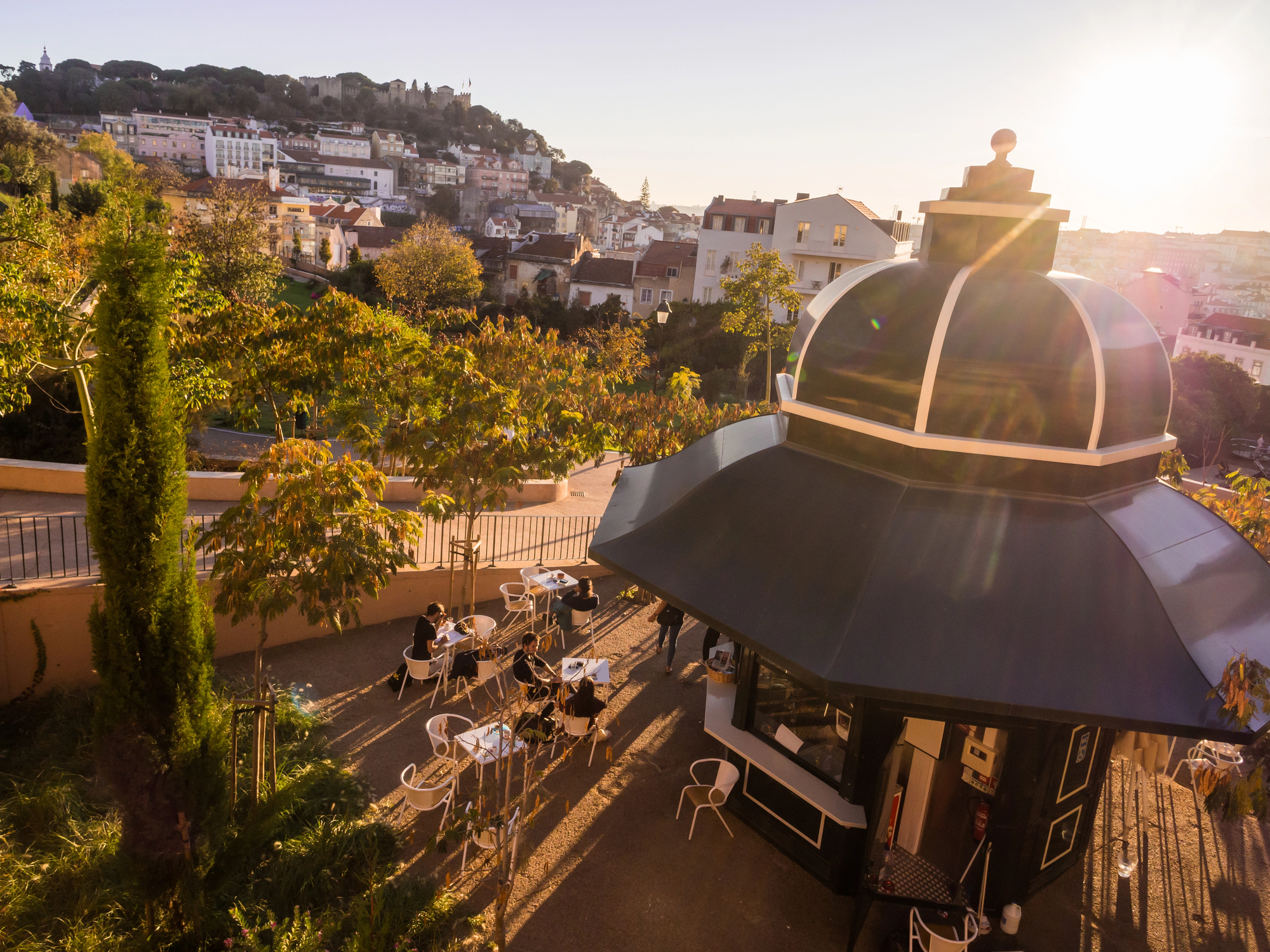 Situated between the districts of Graça and Mouraria on a hillside terrace, this kiosk offers great views of the castle and city below. The garden, Jardim da Cerca Graça, was created in 2015 as part of a larger scheme to regenerate the area. There are areas for picnics and a playground for children. Since opening, this large kiosk has become an indispensable part of the area, serving cold soups, sandwiches, toast, beverages, and a daily cake selection.