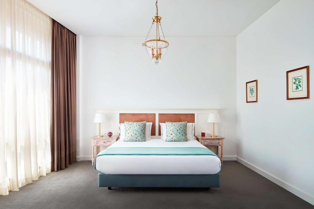 A 19th-century manor house, Sintra Marmoris Palace is only a 7-minute walk from the historical center of Sintra. This place opened in 2017 after being restored, over 100 years after it was first built. The Marmoris Palace has 9 rooms divided over two separate buildings, between 14,000m2 of landscaped gardens. The elegant rooms offer views of Pena Palace and the Moorish Castle. While the Marmoris Palace does not feature a spa, it includes a large outdoor pool that can be partially covered. You will get greeted with a complimentary drink and perhaps a few peacocks wandering the gardens.
