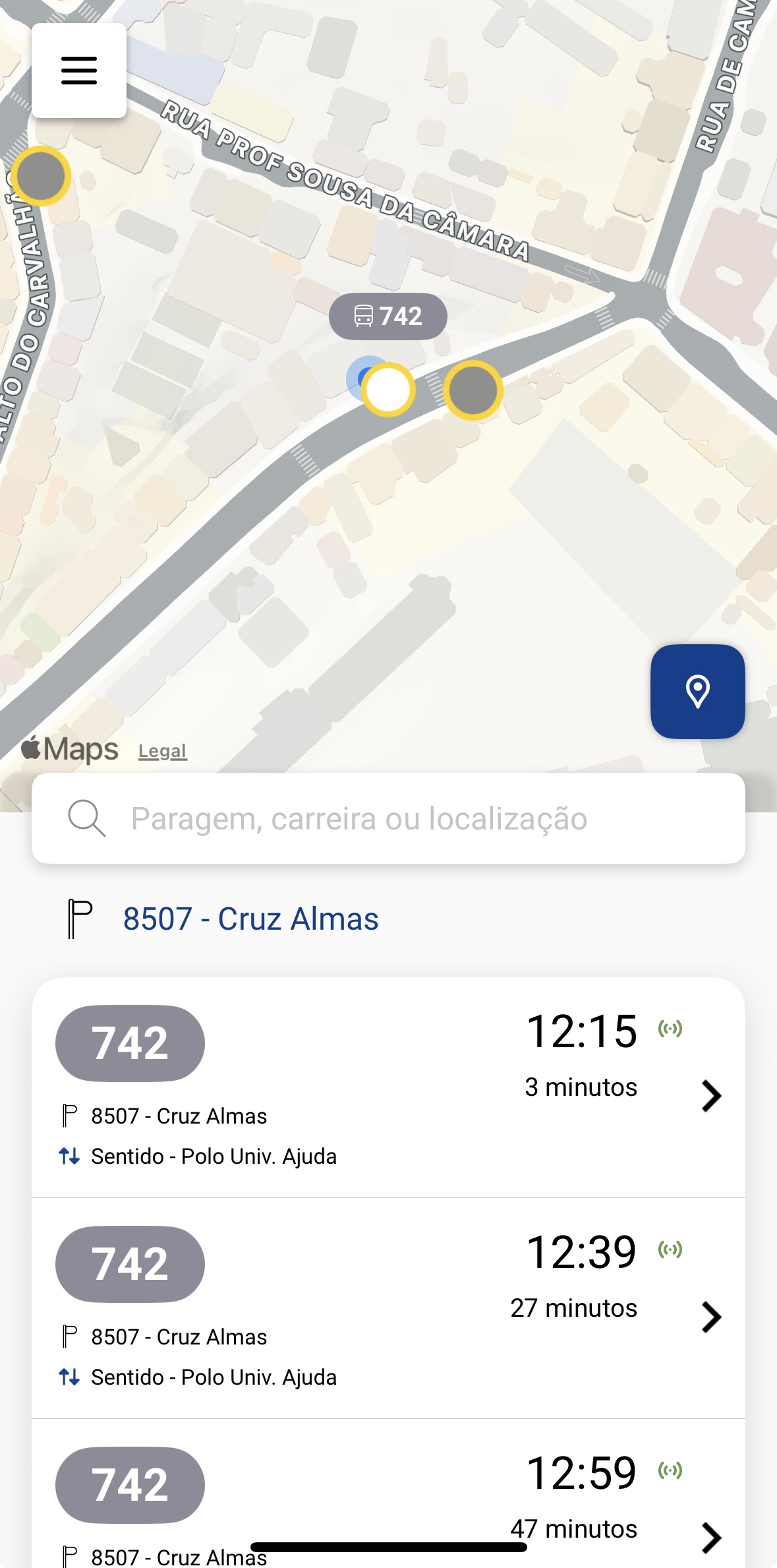 It is important to know that “Sentido” means “Direction.” For example, bus route 742 runs in two directions, towards B. Madre Deus or Pólo Universitário Ajuda. Pay attention to the “Sentido” that appears when you click on the different bus stops in CARRISway to make sure that you are going to take the bus in the right direction!