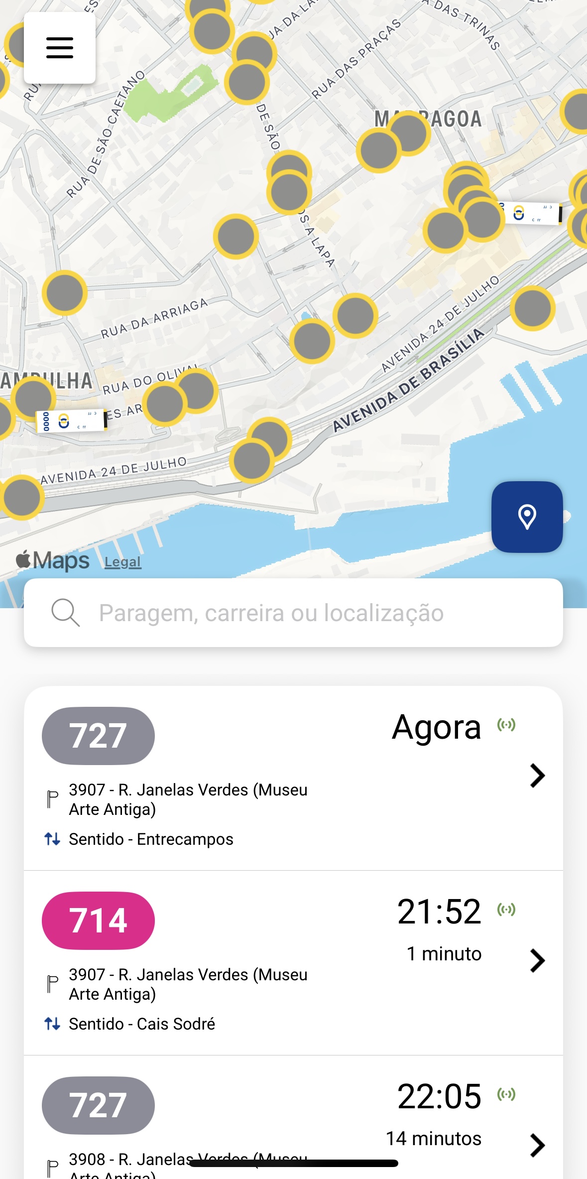 While CARRISway has made significant improvements and provides useful real-time bus and tram information, it still has a long way to go in terms of functionality. First of all, tourists are completely unfamiliar with bus routes and where they go. The CARRISway app can not help you find the route you need to get from one point to another. In our opinion, it is best to use Google or Apple Maps in combination with the CARRISway app to have the best experience. Google Maps, for example, can tell you which bus routes (and the direction or “sentido”) you need to take. After locating the closest bus stop that Google Maps suggests, open CARRISway and locate the same bus stop to see when the bus is REALLY scheduled to arrive. Google and Apple Maps do not know the actual time of arrival of Lisbon buses, but CARRISway can sync to actual real-time data provided by the CARRIS transport network.
