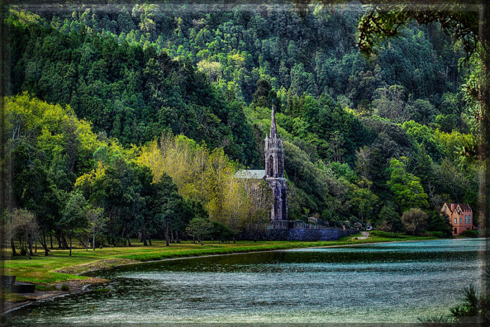 The chapel’s neo-Gothic design sets it apart from other religious structures in the Azores. Its slim tower and intricate adornments evoke the architectural grandeur of 19th-century Europe, but with a softer, almost dreamlike quality that blends into the lush environment of Lagoa das Furnas.