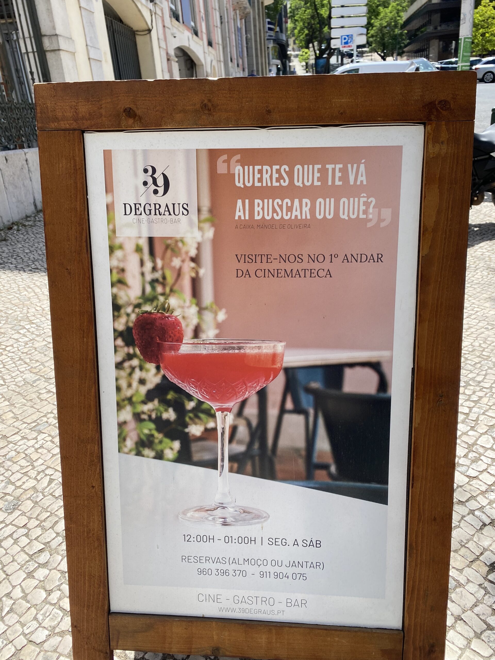 The restaurant Espaço 39 Degraus serves a choice of three dishes a day: meat, fish, or vegetarian. There are also some cinema-themed cocktails which can be enjoyed on fine days on an outdoor terrace.