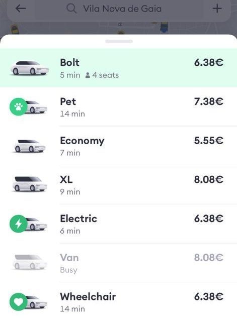 Bolt also has scooters and e-bikes that you can rent. However, their carsharing service is not available in Portugal.