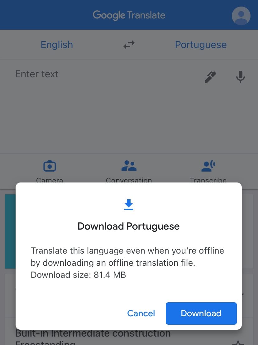 We recommend downloading the Portuguese language feature so you can use it even when you’re offline.