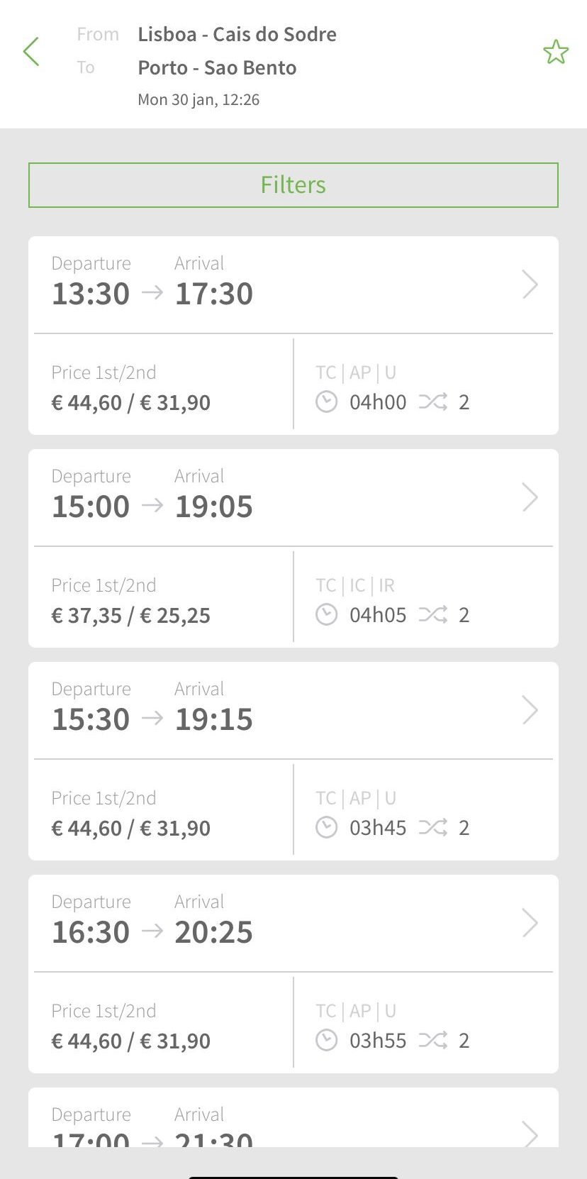 Moreover, you can purchase tickets for the trains Alfa Pendular, Intercidades, Regional, InterRegional, Comboios Urbanos de Coimbra, and Comboios Urbanos do Porto. You can also choose your seats for some trains.