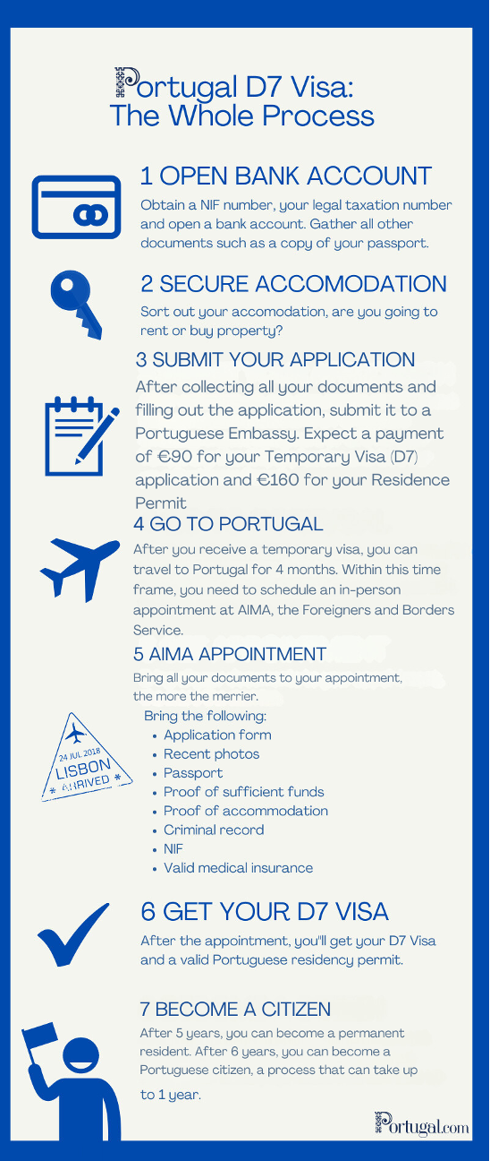 Before you begin the visa process, however, it is important to consider your current finances and decide whether you can afford to make the move. You shouldn’t move to any new country without the financial means to support yourself. Many visas, such as the D7, does not allow you to work for a Portuguese employer in Portugal, so you will need to earn money from a foreign employer or passive income. You should also be prepared to assimilate into Portugal, understand the Portuguese culture, and learn the language. With the proper paperwork and financial support, Portugal is here to welcome you, but you will also need the right mindset to start the residency process.