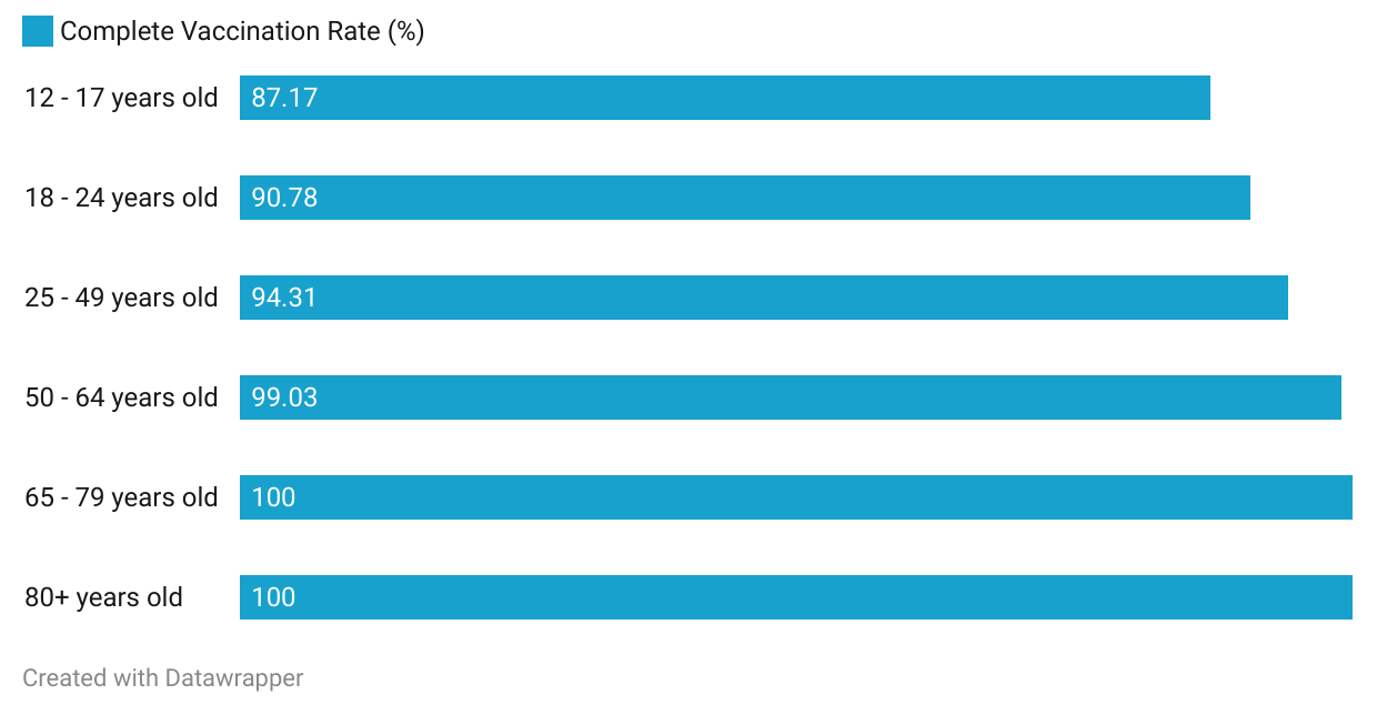 Covid-19 Vaccination Rate in Portugal by Age Group