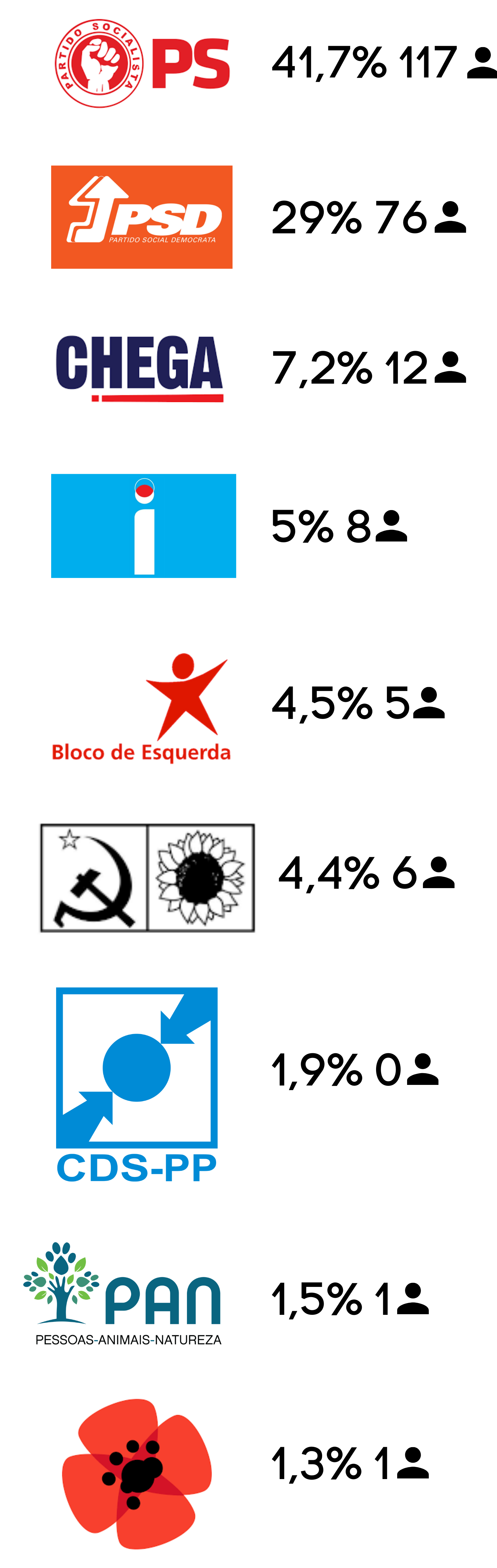 Similarly, the Unitary Democratic Coalition (CDU), a coalition between the Portuguese Communist Party (PC) and The Greens, lost half of their seats, from 12 in 2019 to 6.