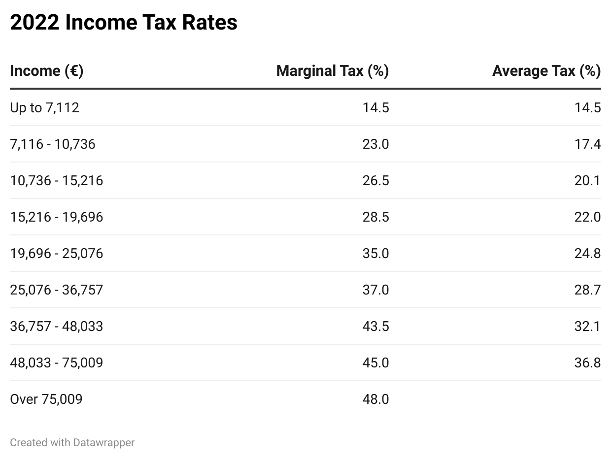 - Tax reductions for families with a second child. A couple with two kids making a yearly gross income of €47,600 will save €330 a year, as seen below.