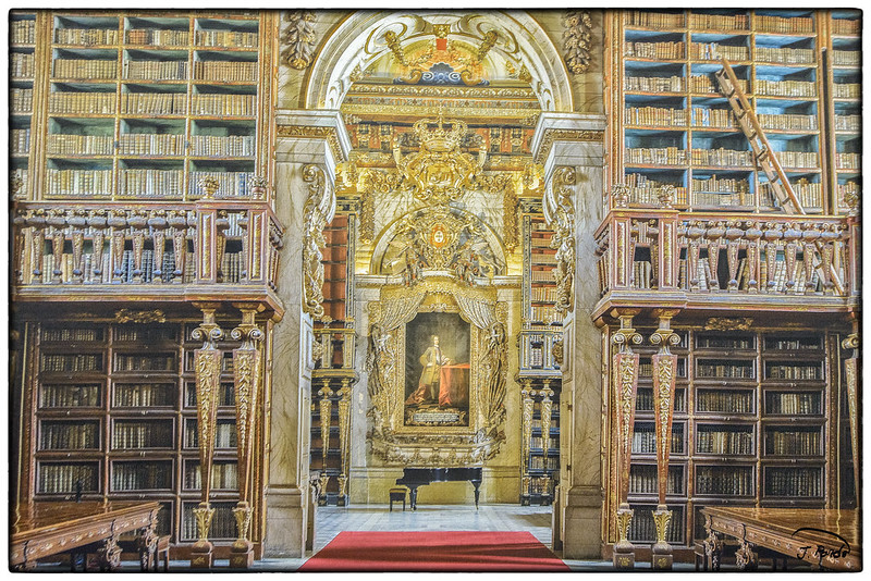 - The Noble Floor. It has three halls filled with bookshelves adorned with paintings and carvings that will hypnotize you (as if the books weren’t enough!). In addition, you’ll delight in the gorgeous archways that connect these halls. The ceiling of this floor is decorated with figures and messages linked to the ideals and principles of the University of Coimbra. Most of the books that reside on the Noble Floor date from the 15th-18th centuries.