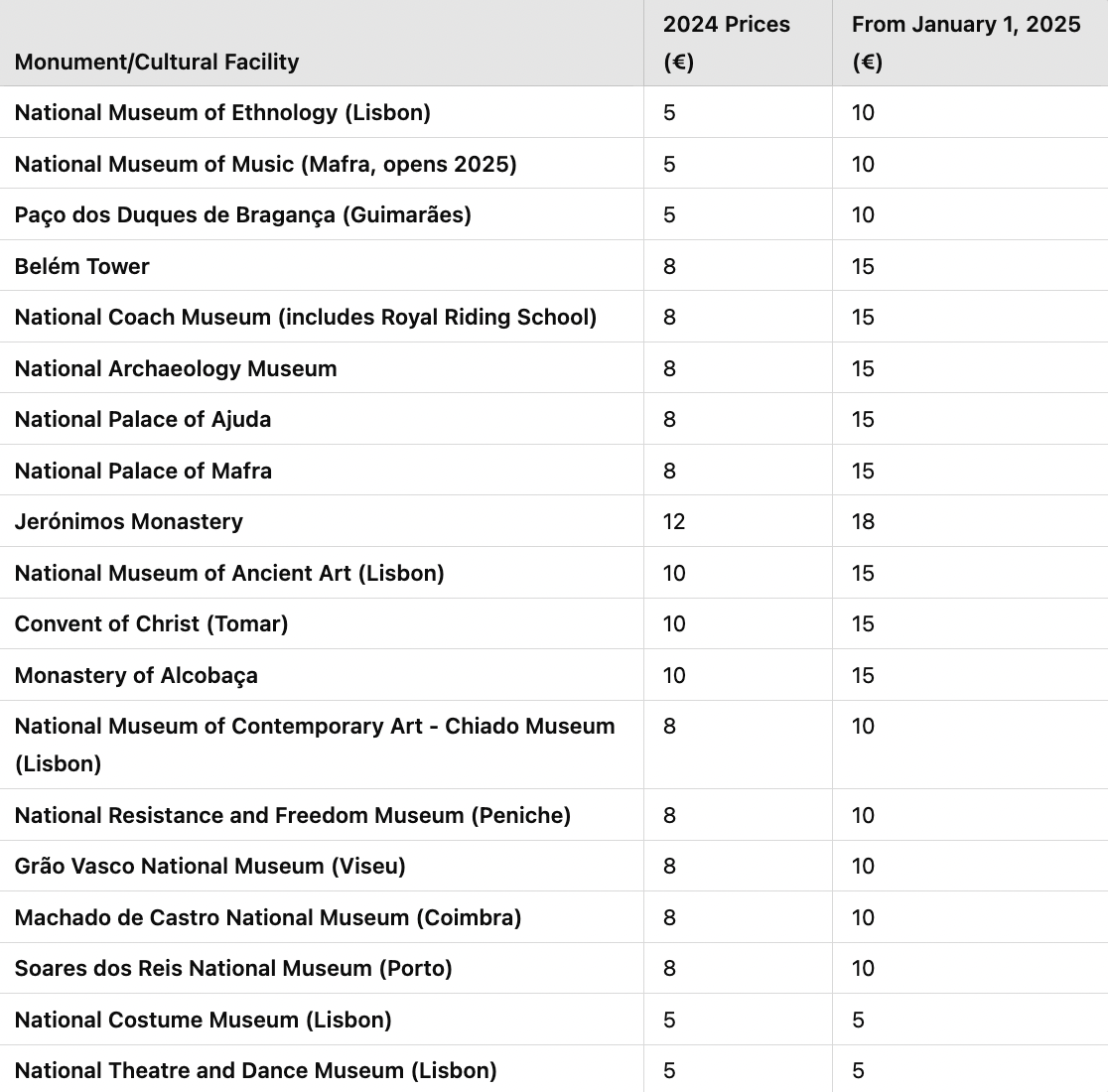 It’s official! The Museums and Monuments of Portugal (MMP) will be increasing admission fees for most of its facilities starting January 1, 2025. Portuguese residents and citizens, however, will continue to enjoy 52 free museum access days annually. These days can be any day of the week, not limited to Sundays. Visitors can also use multiple free-day entries to different museums on the same day.